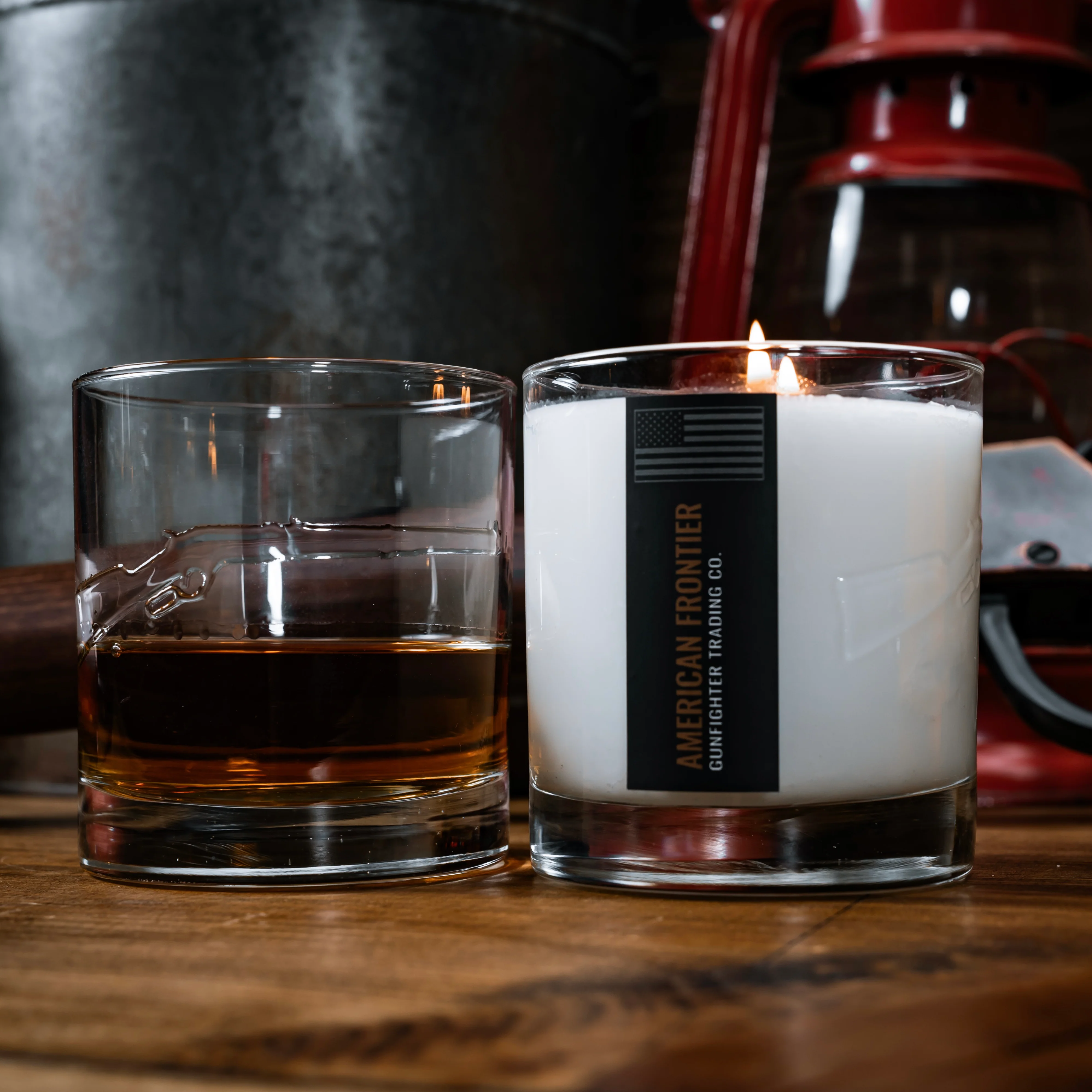 This candle is hand-poured into an American made heavy bottom whiskey rocks glass embossed with a LEVER ACTION RIFLE, which you can feel. When you're done burning your candle, clean it out and keep the glass forever.